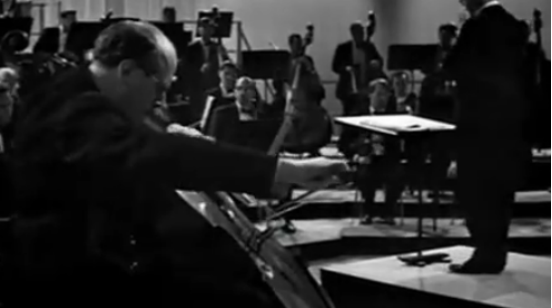 肖斯塔科维奇降E大调第一协奏曲OP.107:第一大提琴协奏曲是题献给罗斯特罗波维奇并由其首演的,肖斯塔克维奇比洛斯特罗波维奇年长21岁,两人即是师生关系(罗氏曾随肖氏学配器),又是志同道合的忘年之交。他俩的合作所产生的这一协奏曲,是乃音乐世界的幸运。