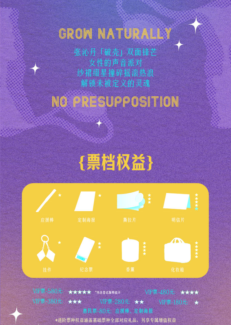3. 购买380票档的观众,可领取应援棒、挂件、定制海报、纪念票以及撕拉片