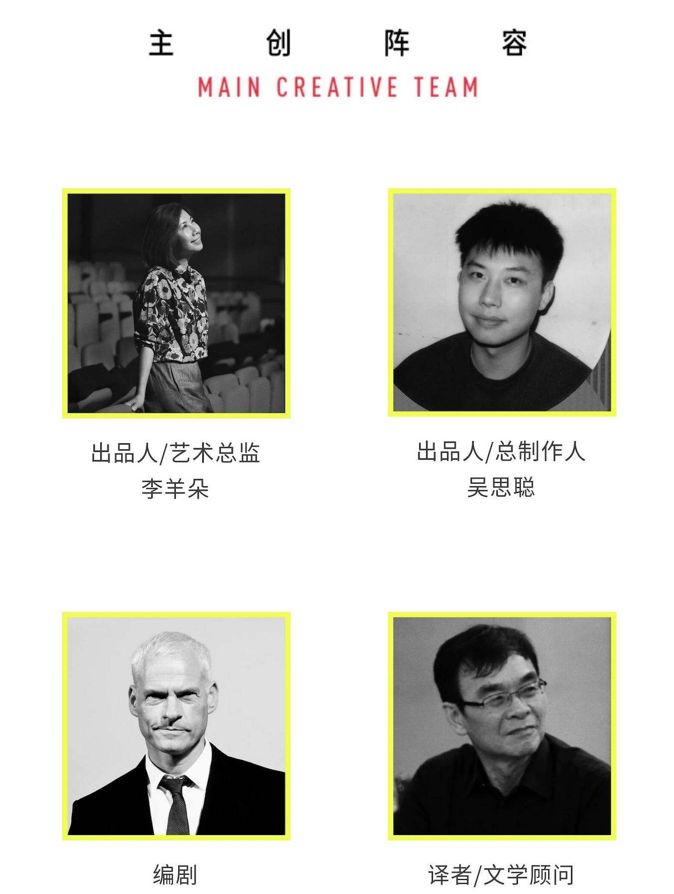 本演出含强烈声音及灯光效果,请根据个人身心承受状况(如有高血压、心脏病人群)谨慎选择观演。