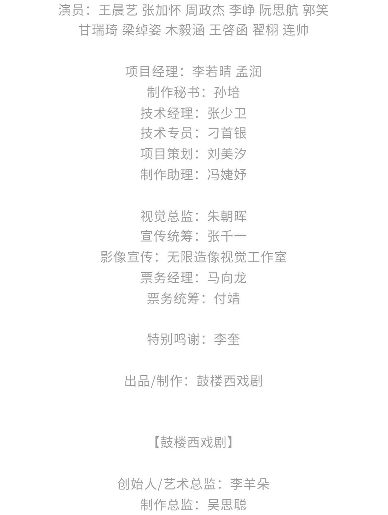 因剧情需要,迟到观众演出开始15分钟后方可入场;演出票当日有效,逾期不作退换;由于地理位置的原因,鼓楼西剧场无法提供车位,请大家绿色出行;为了不影响胡同交通,营造更好的观演环境,请骑共享单车的观众朋友,妥当停置单车(小八道湾胡同与鼓楼西大街交叉口指定停放处),非常感谢您的理解与配合!