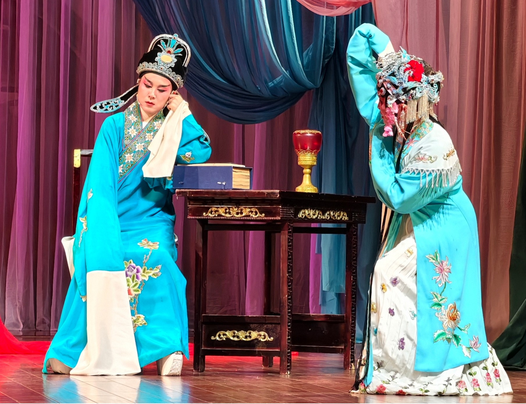 剧中的“三盖衣”“送凤冠”等折是经典选段,前者细腻刻画了秀英深夜为王玉林盖衣时的委屈与深情,尽显人物的温柔坚韧;后者则通过王玉林负荆请罪、阖家和解的场景,传递出包容与和睦的深意,成为全剧的情感高潮。整出戏以“簪”为引,串联起误会与真相、冷漠与温情,既歌颂了传统女性的美德,也宣扬了知错能改、家和万事兴的道理,情感真挚,韵味悠长,历经岁月洗礼仍深受观众喜爱。