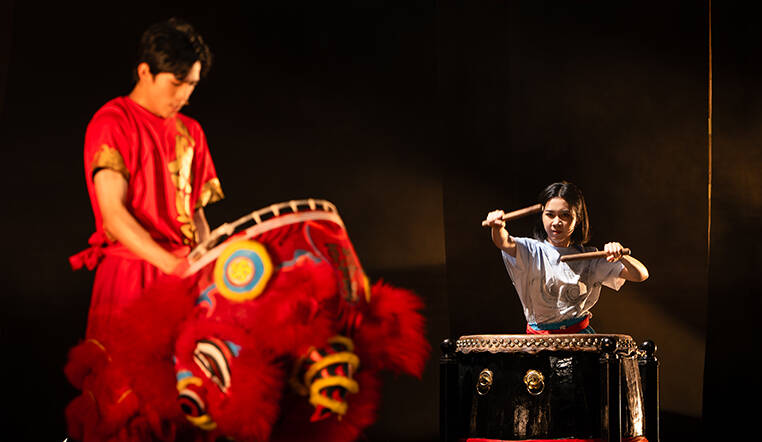 鼓声是传统舞狮中必不可少的音乐元素,在传统舞狮中它将唤醒沉睡的雄狮。作曲高世章将鼓乐贯穿全剧,融汇多元音乐风格,融合流行曲、摇滚、抒情调、地方戏曲、山歌、弗朗明戈舞曲等音乐元素,用音乐谱写少年追梦的心声,燃点少年梦想烈焰。