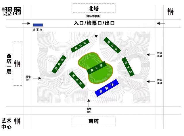 1. 不设对应座位,根据观众入场顺序入场,山丘广场顶部较高,建议观众在平坦区域就座,避免发生意外;